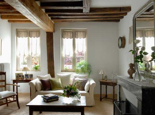 Деревянные балки или панели удачно дополнят интерьер гостиной, прихожей или кухни в стиле прованс. Чаще всего доски окашиваются в белый или молочный цвет, так они делают комнату светлее и хорошо сочетаются с любыми оттенками. Однако их цвет может гармонировать с цветом обоев, отличаясь на один-два тона.