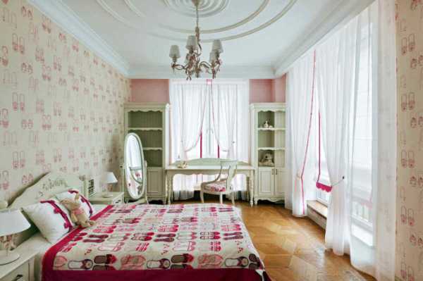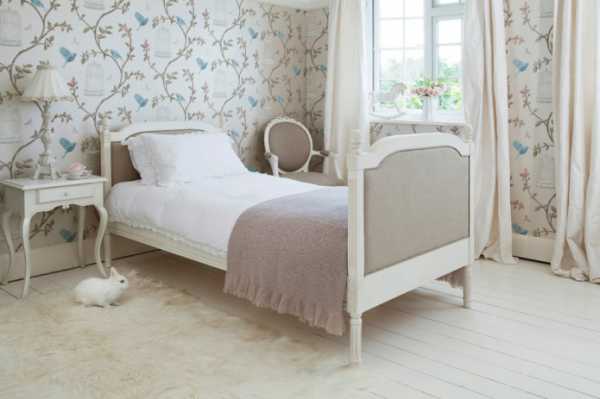 Лаконично и изящно будут украшать комнату в стиле прованс обои под штукатурку или с легким рисунком, например вензеля или полосы. Цвет в дизайн комнаты можно добавить при помощи текстиля и предметов декора.