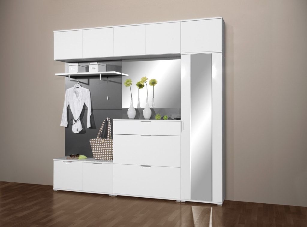 Дизайн белой прихожей со шкафом