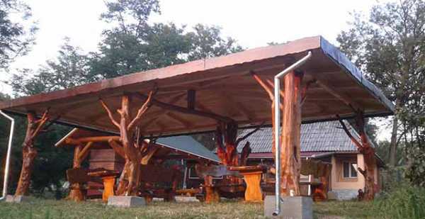Редко можно встретить бунгало со стеновыми ограждениями, это открытая просторная летняя конструкция.