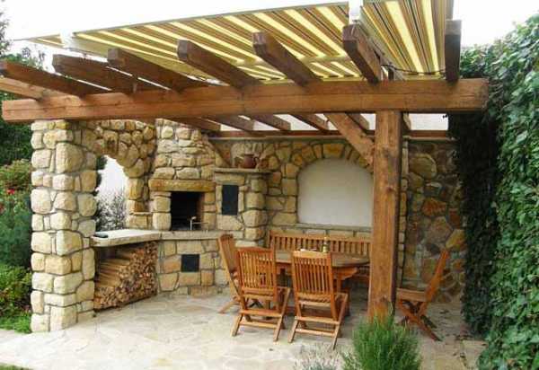 Дизайн беседки с мангалом. Фото строения в рустикальном стиле