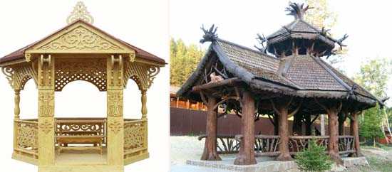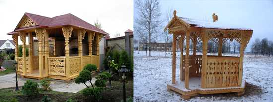 Фото резных беседок из дерева, с красиво оформленными опорными столбами