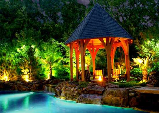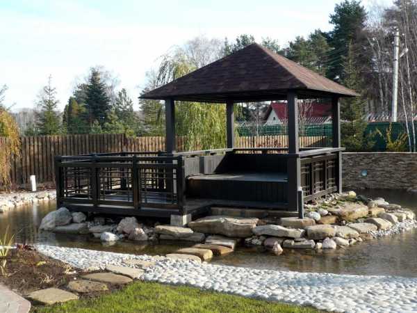 Очень оригинально смотрятся и сооружения в восточном стиле. Самыми популярными вариантами считаются японская беседка или китайская. Характерной особенностью дизайна таких конструкций являются воздушность и легкость. В большинстве своем это многогранные красивые строения из камня и дерева.