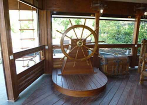 Не так давно в моду вошли конструкции в морском стиле. В дизайне этих оригинальных красивых сооружений присутствуют разного рода элементы, напоминающие о море. Это может быть голубая обшивка из поликарбоната, сети на стенах, роспись и т. д.
