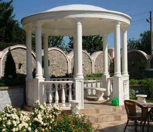 Дачные беседки в классическом стиле – вариант также достаточно распространенный и красивый. Обычно это большие сооружения строгих геометрических форм, с опорными столбами, стилизованными под колонны.