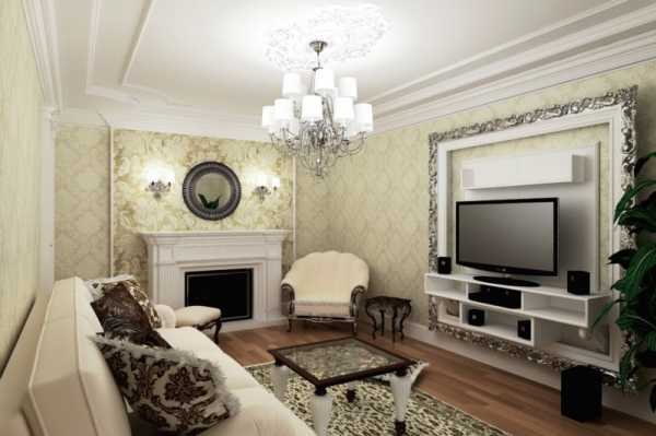 Классика – не всегда размеры комнаты позволяют сделать настоящий классический интерьер в гостиной, но правильно подобранные обои в силах создать подобную иллюзию. В данном случае они – акцент декора. Выбирайте яркую цветовую гамму и самые необычные узоры.