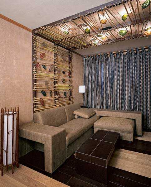 Японский стиль – бамбуковые обои как будто специально придуманы для этого стиля. Отлично будет смотреться комбинирование таких обоев с обычными видами. Прекрасны и текстильные виды с традиционными японскими орнаментами.