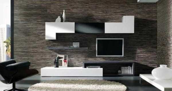 Если цвет мебели в гостиной чёрный, тёмно-коричневый, венге, то стены в обязательном порядке должны быть светлые, лучше однотонные или с мелким неярким рисунком. Крупные узоры и тёмные стены в сочетании с тёмной мебелью сделают комнату мрачной, маленькой и неуютной.