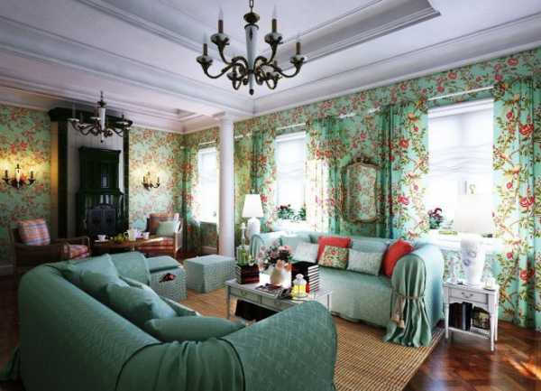 Прованс – простота и скромность стиля лучше всего проявляется на стенах. Обои в гостиную прованс следует выбирать только светлых и теплых оттенков и обязательно с цветочным рисунком, напоминающим обычный ситец.