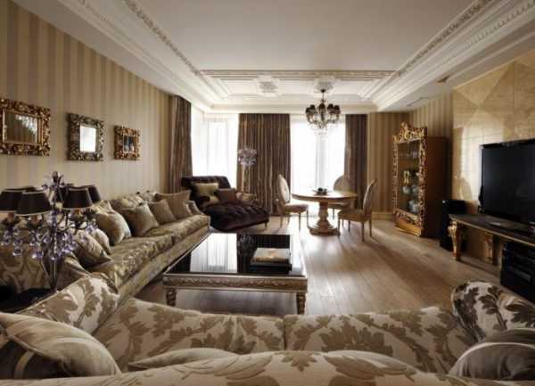 Гостиную в классическом стиле можно считать по истине нейтральным помещением. Отсутствие какой-либо агрессии в интерьере делает комнату уютной и способствует качественному отдыху.