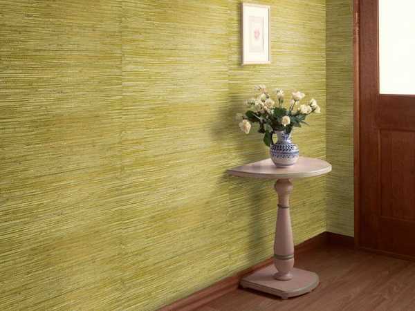 Свежо и стильно будут смотреться в интерьере стеклообои, изготавливаемые из специального стекловолокна. К их плюсам относят: практичность, пожароустойчивость, влагостойкость. При поклейке стеклообоев требуется использование особо крепкого клея, соответственно, они тяжело удаляются со стен.