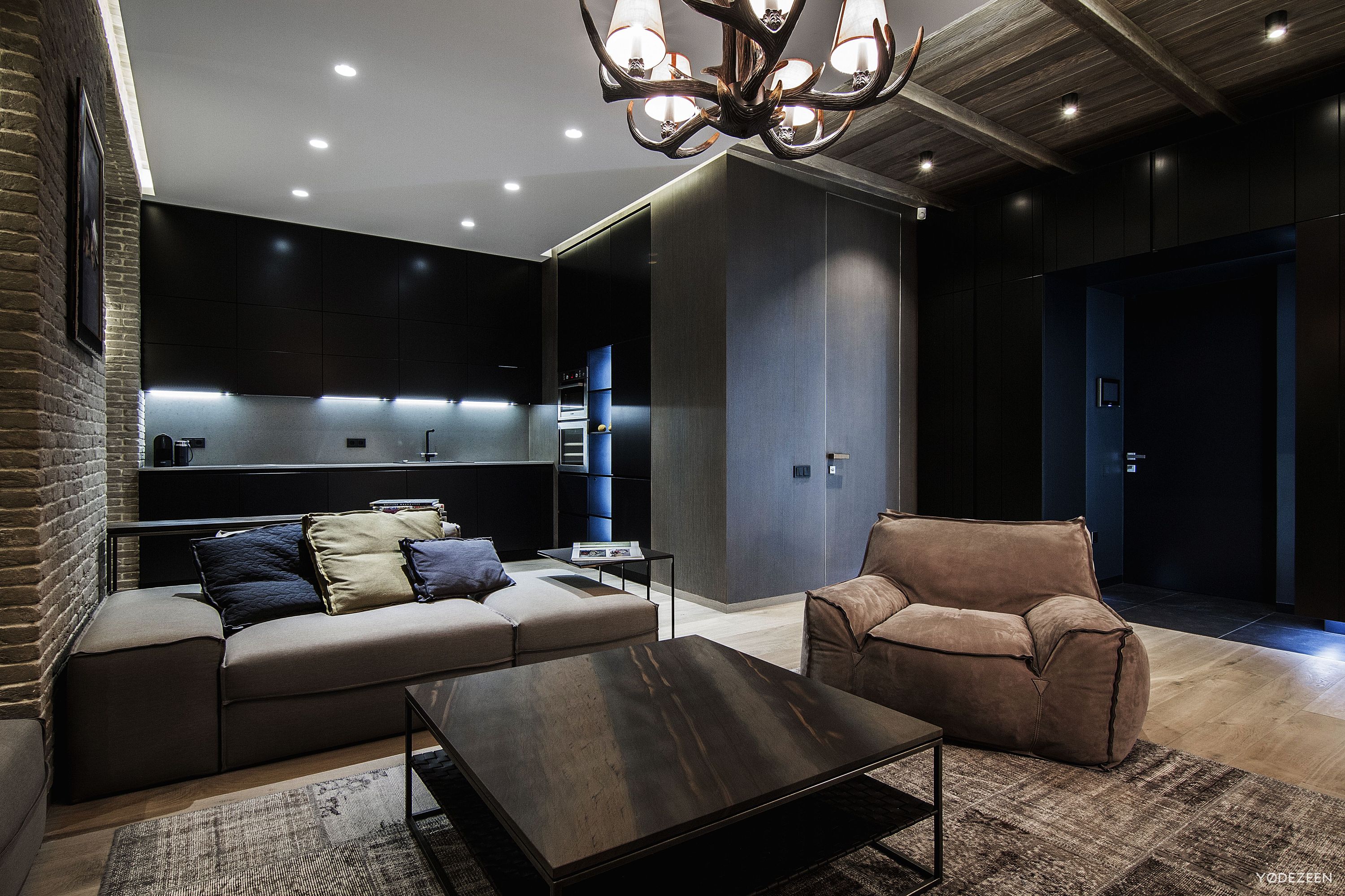 Создавайте контрасты. Брутальные материалы, например, кирпич лучше «оттенять» рафинированными, нейтральными по цвету материалами