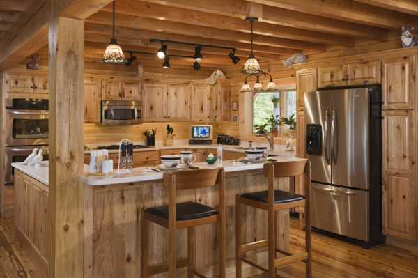Фото: Барный стол из натурального дерева подойдет классической кухне