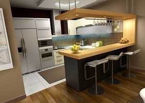 В некоторых случаях дизайн комнаты, отведенной под кухню, кажется не гармонирующим с общим интерьером жилого пространства. Например, кухонное помещение может быть большим квадратом, который кажется пустым и неуютным местом. Идеальным решением в этом случае будет установка в его центре островной барной стойки. В некоторых случаях уместным окажется и расположение рядом с таким островком-баром и варочной панели или мойки.