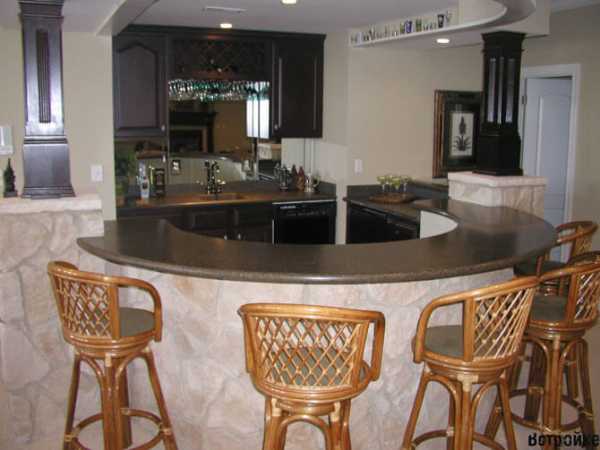 Эта мебель создает легкую, раскованную атмосферу в интерьере кухни, где можно расслабиться и непринужденно пообщаться за бокалом вина, чашечкой ароматного чая или кофе. При его наличии так и хочется собрать друзей и для них собственноручно смешивать различные коктейли.