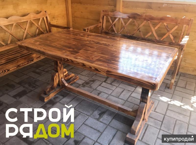 Комплект мебели под старину из массива для беседки на 6-10 человек «Суздальский»