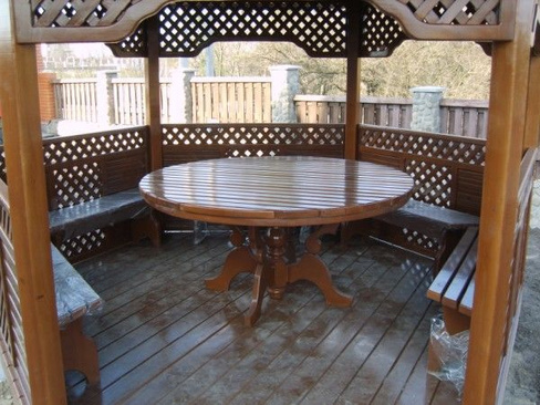 Изготовляя стол в беседку своими руками, вы имеете еще несколько преимуществ.