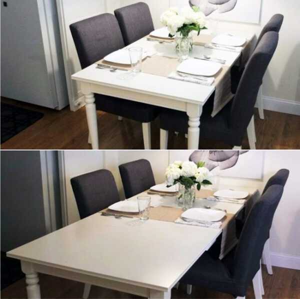 Раскладной квадратный стол — прекрасное решение для маленького помещения