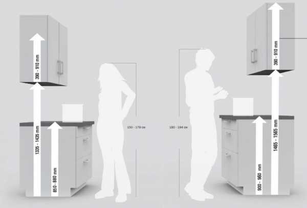 Хорошо, когда сразу получается определиться с тем, для кого высота стола будет принципиально важна. Если приоритета нет, то разумным решением будет максимальный уровень столешницы подстроить под хозяйку, которая проводит на кухне треть своей жизни. Приходится применить философский подход и использовать дополнительные возможности предложений изготовителей мебели.