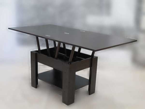 СПРАВКА. Если ваша квартира имеет весьма компактную площадь, модель трансформер станет идеальным решением для организации пространства. У вас всегда в доме будет небольшой кофейный столик, также ребенку будет где заниматься, а при необходимости вы сможете его разложить и у вас появиться полноценный обеденный стол.