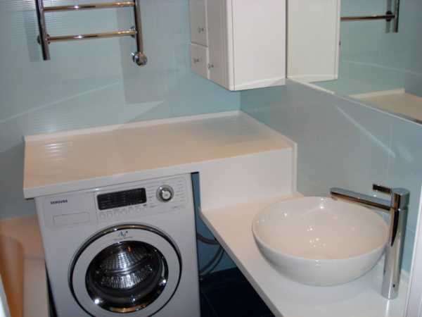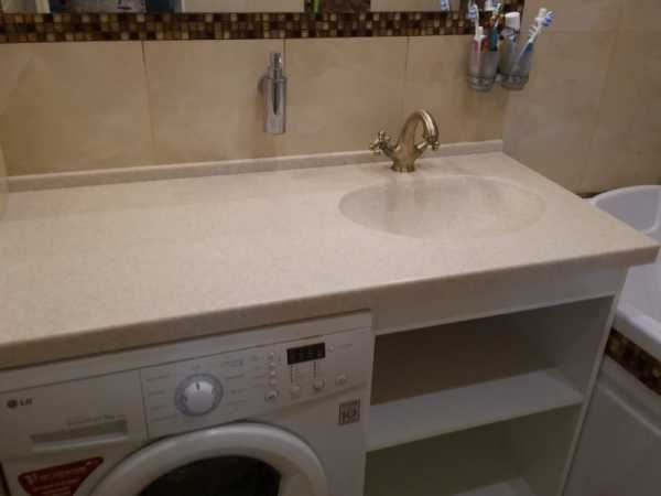 Как оказалось, ванная комната предоставляет широкие возможности для дизайна. Есть много интересных решений, придающих санитарому помещению изысканный вид. Причем функциональность и удобство не страдают, а, наоборот, улучшаются. Одно из таких решений — столешница для ванной комнаты под раковину. Вместо привычной тумбы есть только горизонтальная плоскость, под которой можно разместить стиральную машину или корзину для белья.