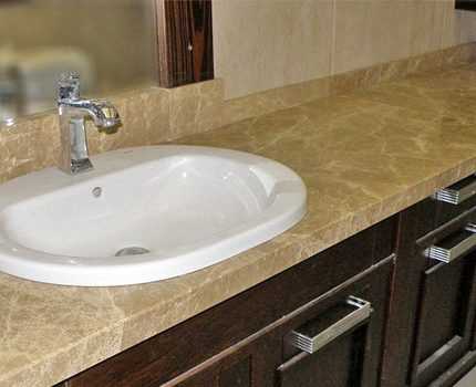 Столешница для ванной комнаты под раковину: виды, выбор