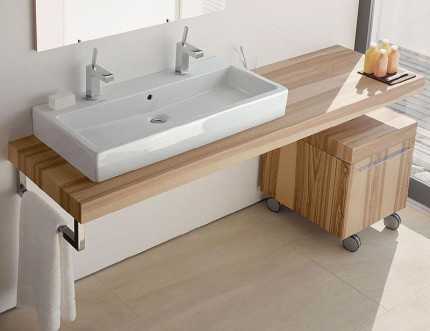 Столешница для ванной комнаты под раковину изготавливается из дерева в том числе