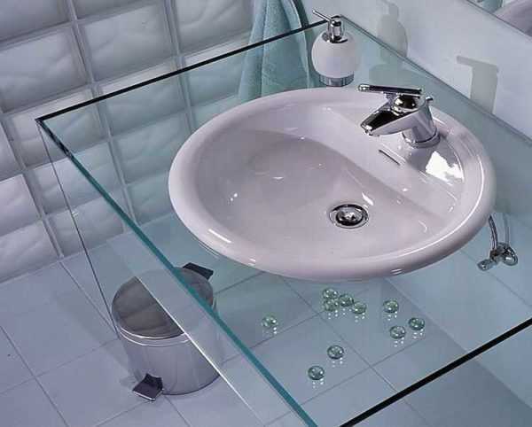 Только надо иметь в виду, что любые пятна на стекле очень заметны. Придется натирать поверхность постоянно следить за чистотой. В общем, стеклянная столешница для ванной комнаты под раковину — для тех, кто любит уборку.