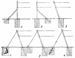 г,д,е — различные виды якорей.