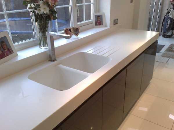- возможность создавать достаточно большие столешницы без швов, а это, во-первых, эстетично, а, во-вторых, надежно, ведь влага не просочится в шов;