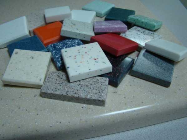 - широкое разнообразие вариантов. Столешница может быть какого угодно цвета, повторять текстуру природных камней, иметь декоративные включения.