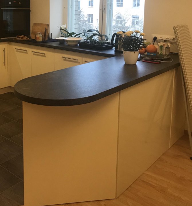 Если вы решили, что на вашей кухне этому предмету быть, то необходимо определиться со следующим: купить ли готовый вариант или же заказать по своим замерам. Для нестандартных по планировке помещений или маленьких кухонь целесообразно заказать барную столешницу. В остальных случаях можно обратить внимание на уже готовые. Немаловажно, чтобы она гармонировала с общим дизайном кухонного помещения.