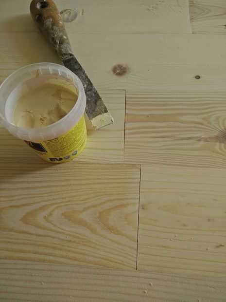 После того, как гвозди демонтированы, нужно отшлифовать всю поверхность, удалить неровности и заделать трещины с помощью клея для дерева.