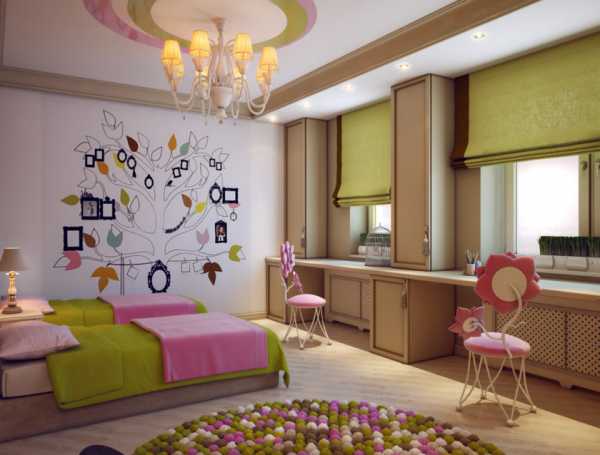 - Комната для 2 девочек – это сказочное пространство для сестер-мечтательниц в нежных оттенках и с обилием текстиля. Зачастую девочки более спокойные, чем мальчишки, и много играют вместе, но всё же при создании детской стоит учитывать темперамент каждой. В этой статье собрано много полезных рекомендаций по обустройству девчачьей комнаты.