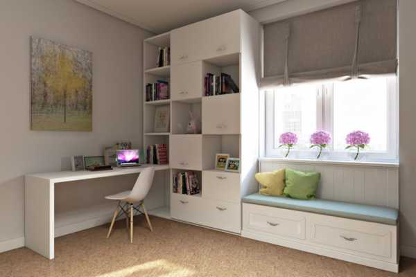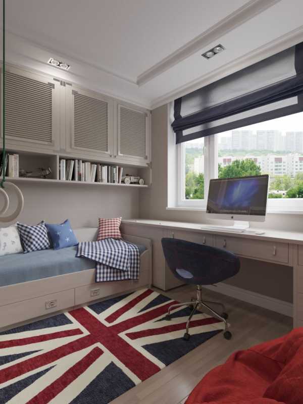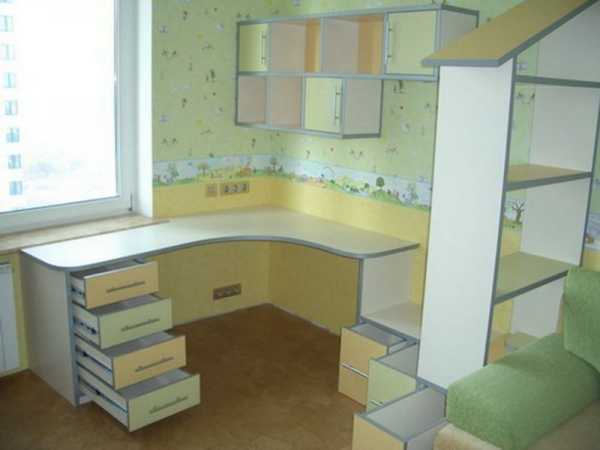 Другая проблема, если площадь детской комнаты не велика, а форма ее квадратная, то рабочая зона у окна может забрать большую часть помещения, а это значит, что в комнате совсем не останется свободного места для игр.