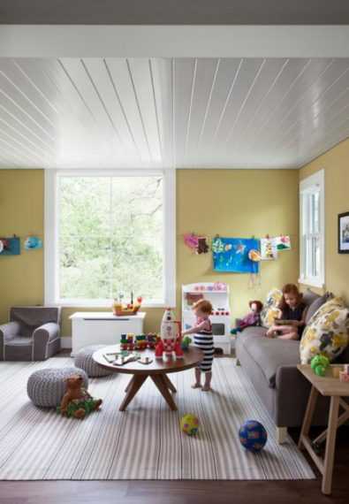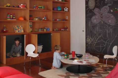 Игровая комната с удобным и практичным столом для двоих детей в интерьере