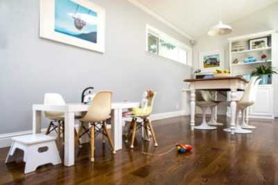 Большой прямоугольный стол из натурального дерева прекрасно подойдет для семьи с большим количеством детей