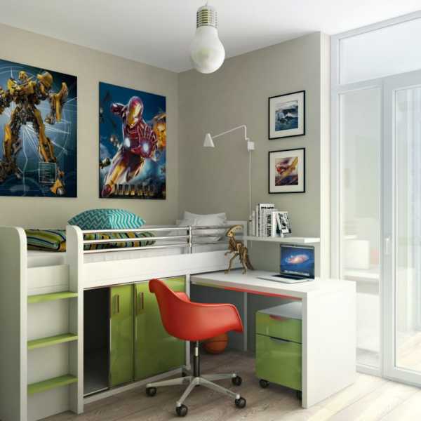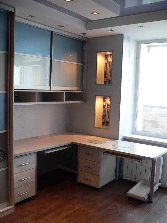 Все большую популярность сегодня находят письменные столы, расположенные под спальным местом. Кровать – чердак, несколько ящиков, шкаф для хранения принадлежностей и собственный письменный стол – решение интересное, выгодное по деньгам, но надо смотреть,как оно вписывается в помещение.
