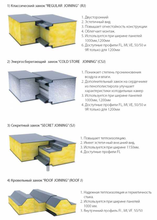 — мостики холода. Никакие замки не могут обеспечить пока что достаточное избавление от просачивания холода в силу примыкания друг к другу концов всех слоев панели. При полистовой сборке ограждающих, например, швы между полотнами в каждом слое находятся не один над другим, а располагаются в шахматном порядке. Это мешает проникновению холода.