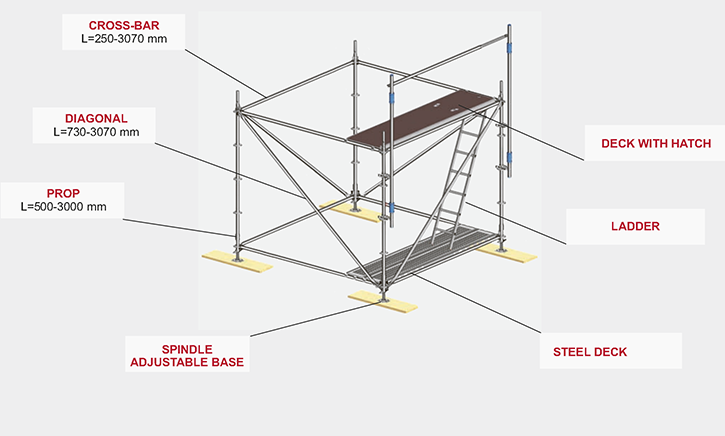 Невзирая на то, что строительные леса представлены во многих видах, в их конструкциях находятся идентичные детали, несущие одно и то же назначение: