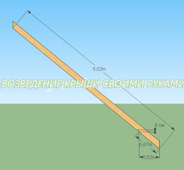 Но можно просто расположить временную доску между коньком и центром бруса фронтонной стены и измерить ее. Затем к полученному значению добавить от 30 до 50 сантиметров, которые «пойдут на вынос».