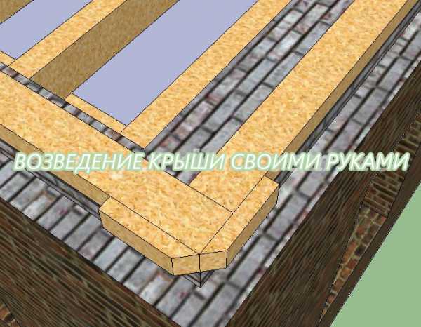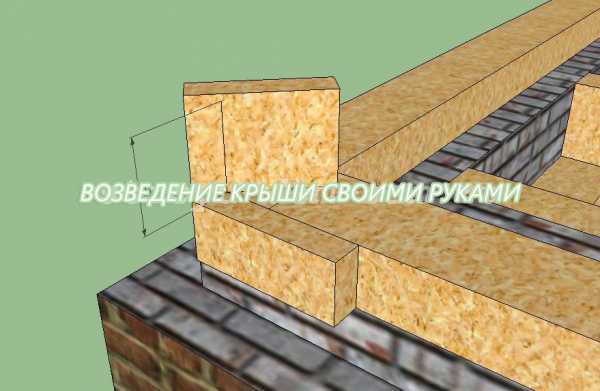 Из следующей иллюстрации видно, что по углам к мауэрплату крепятся по два запиленных обрезка доски сечением 50х100 мм и длиной примерно 30 см. Угол запилов составляет 45º.