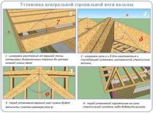 Установка центральной стропильной ноги вальмовой крыши