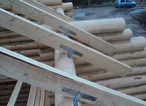 На бревне также можно сделать небольшие пазы, ввести в них стропильные ноги и зафиксировать аналогичным образом.