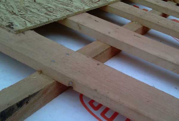 Листы фанеры укладываются вразбежку – их стыки в параллельных рядах не должны находиться в одном месте. Плиты OSB устанавливаются в шахматном порядке, то есть разбежка швов тоже необходима. Стыки продольных швов должны располагаться на брусках обрешетки (контробрешетки).