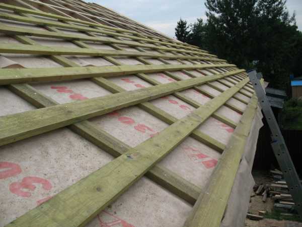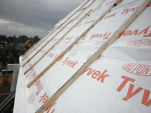 Гидроизоляция – тоже важный аспект, которым пренебрегать не стоит. Материал, способный удерживать влагу, укладывается на стропила и фиксируется брусками – формируется контробрешетка (разреженная обрешетка).