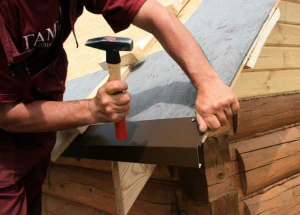 Что касается рулонного материала, то его нужно перегибать на торцах свесов – поэтому на концах крайние доски целесообразно обстрогать, дабы рубероид не перетирался и не ломался на сгибах. На коньке рулонный материал перекрывается полоской кровельной стали – шириной около 30 см.