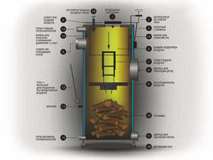 Рисунок 1. Схема конструкции пиролизного котла.