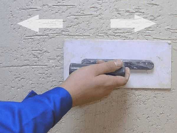 Полутерок нужно держать под небольшим углом к стене. Нанесение декоративной штукатурки короед производят по вертикали полосами, немного перекрывающими друг друга. Сила нажима должна быть везде одинаковой.