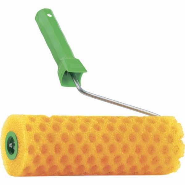 После покраски поролоновым роликом, узор на поверхности напоминает множество лопнувших пузырей разного размера. Поролоновые насадки могут эксплуатироваться не очень долго, так как они сминаются и рвутся. Довольно сложно окрашивать поролоновыми валиками фактурные стены, если не умело обращаться с этим инструментом, образуется множество брызг. Насадки из поролона обычно используются для нанесения водно-дисперсионных красок.